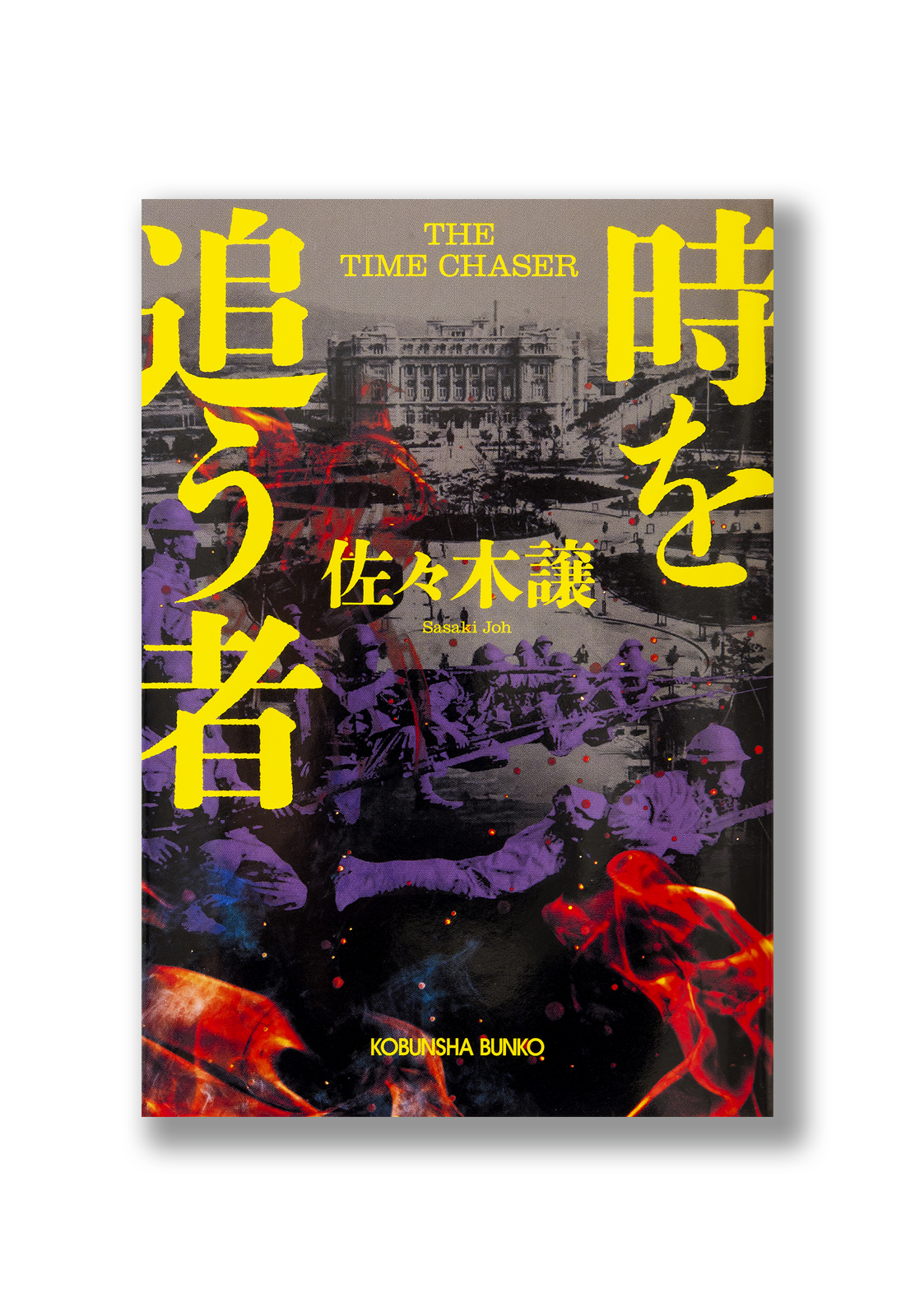 単行本に続いて装幀を担当。親本のデザインを文庫でも踏襲しました。過去改変の舞台となる大連ヤマトホテル、作品の舞台・1930年代の兵士たちの姿に、戦火やテロを想起させる炎のイメージをコラージュしています。