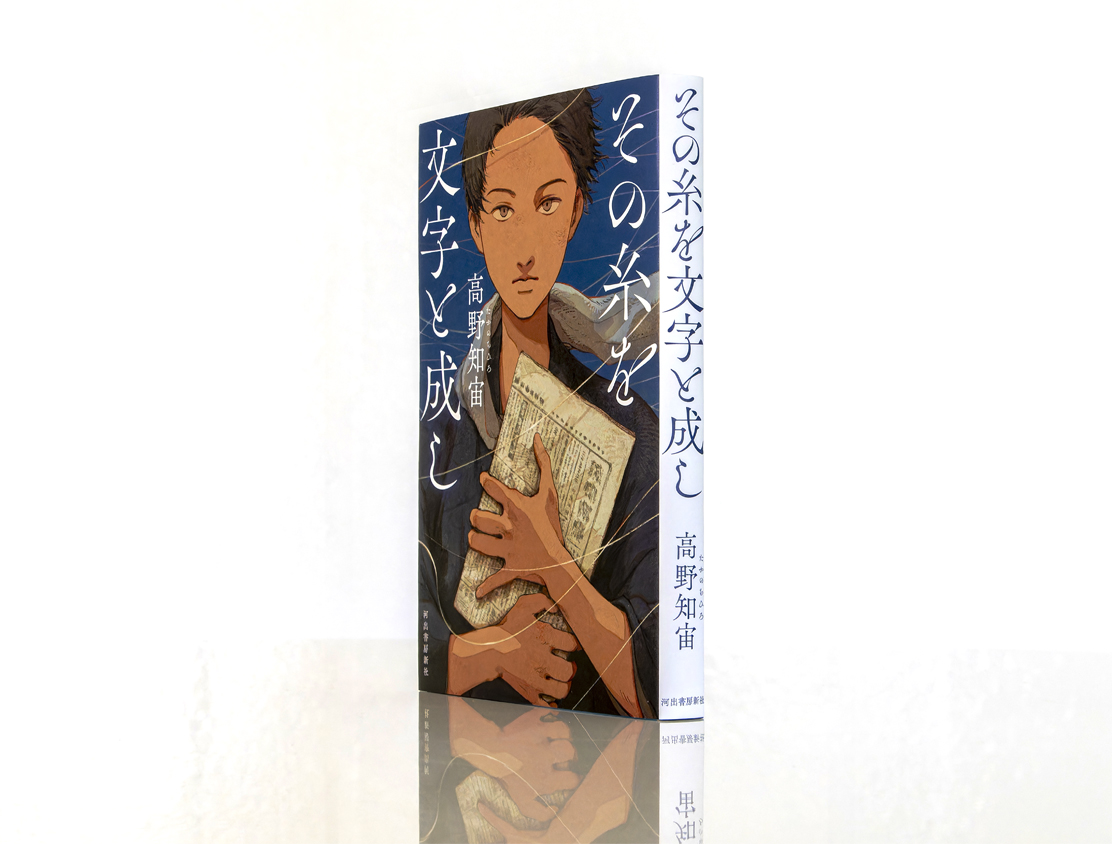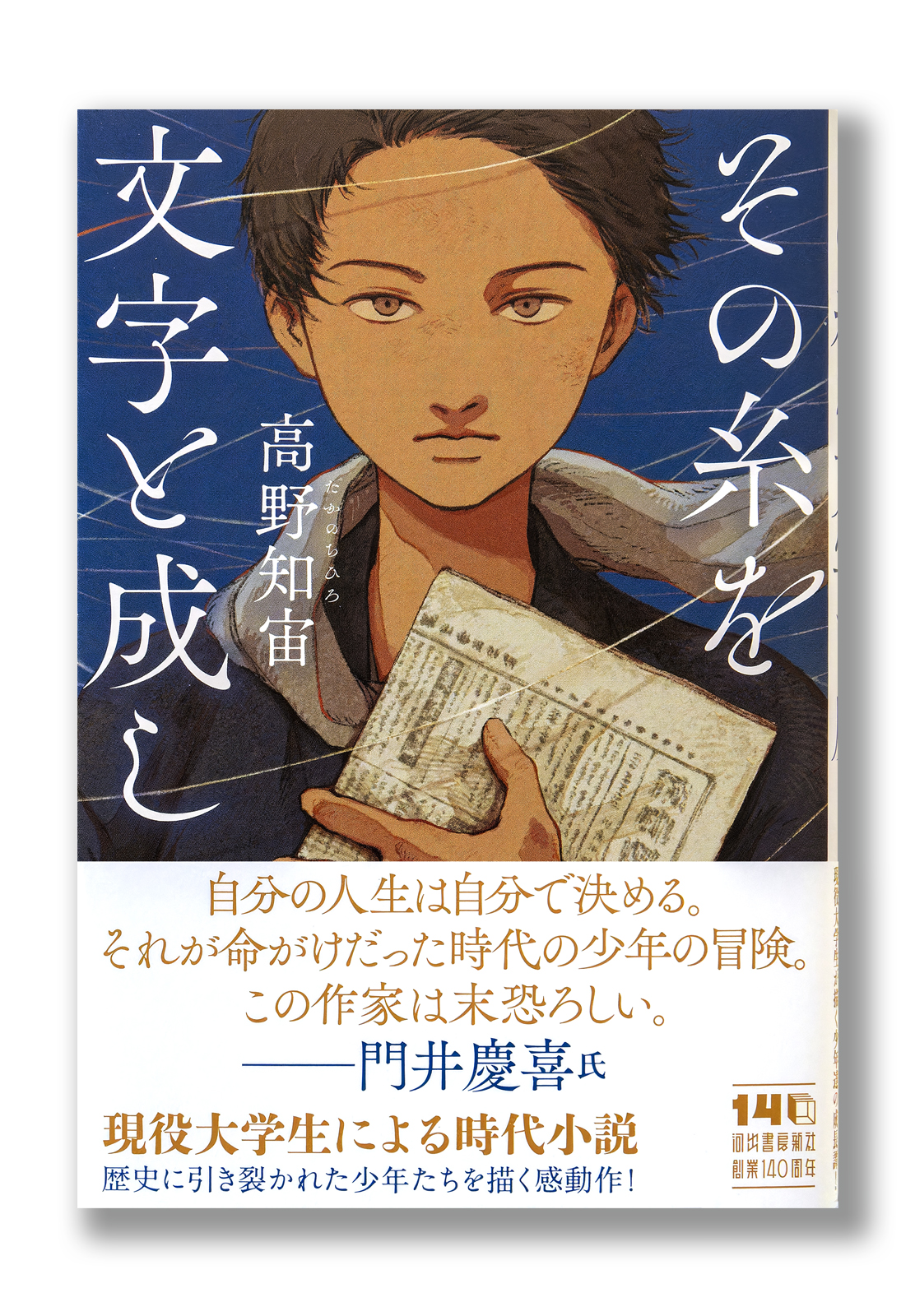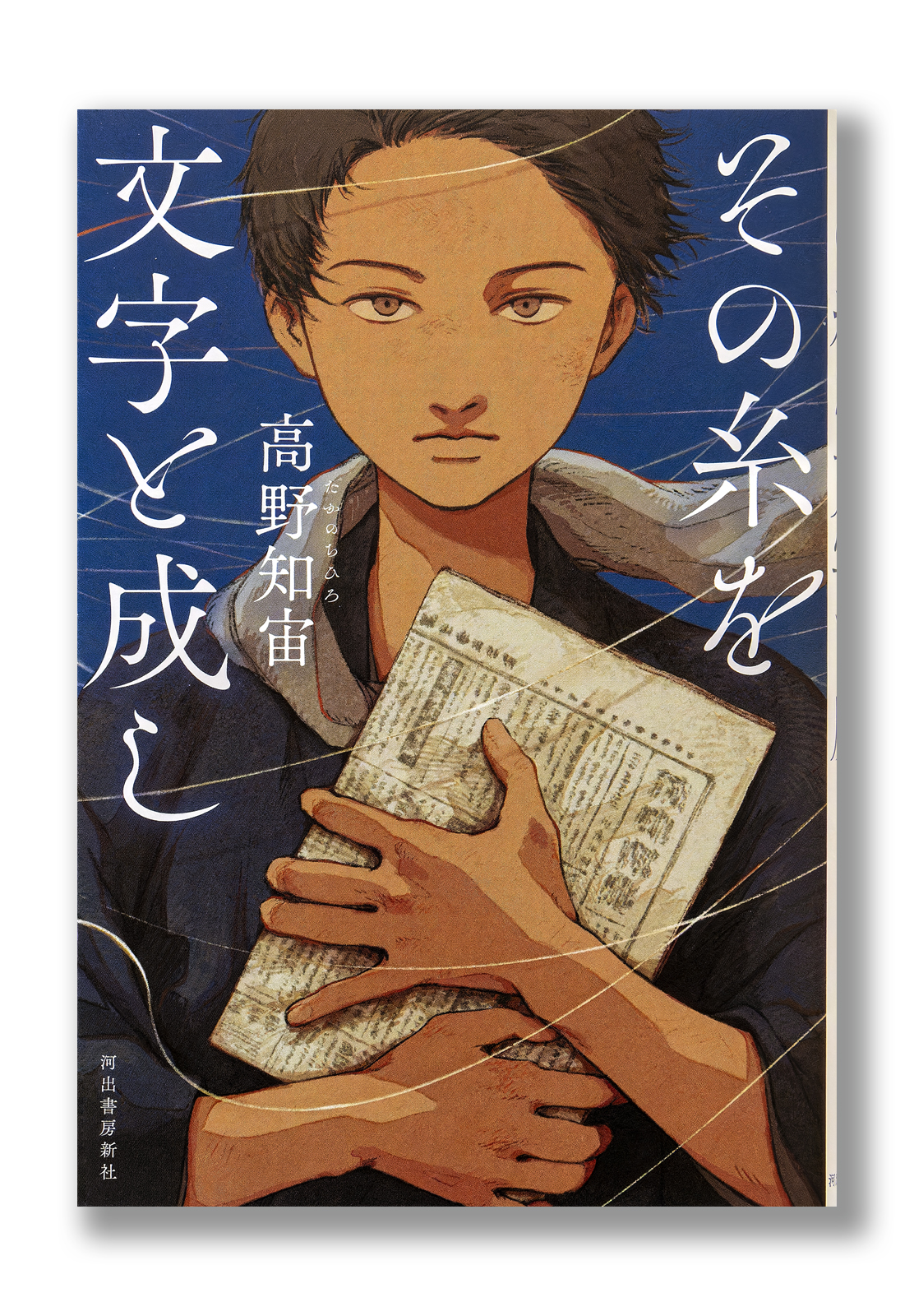 学問によって成長していく意志の強そうな少年の姿を描き出す装幀を目指し、たけもとあかるさんに装画をご依頼。たくさんアイディアをいただいた中から、新聞を大切そうに抱いた少年に糸が軽やかに絡む構図案が採用となりました。