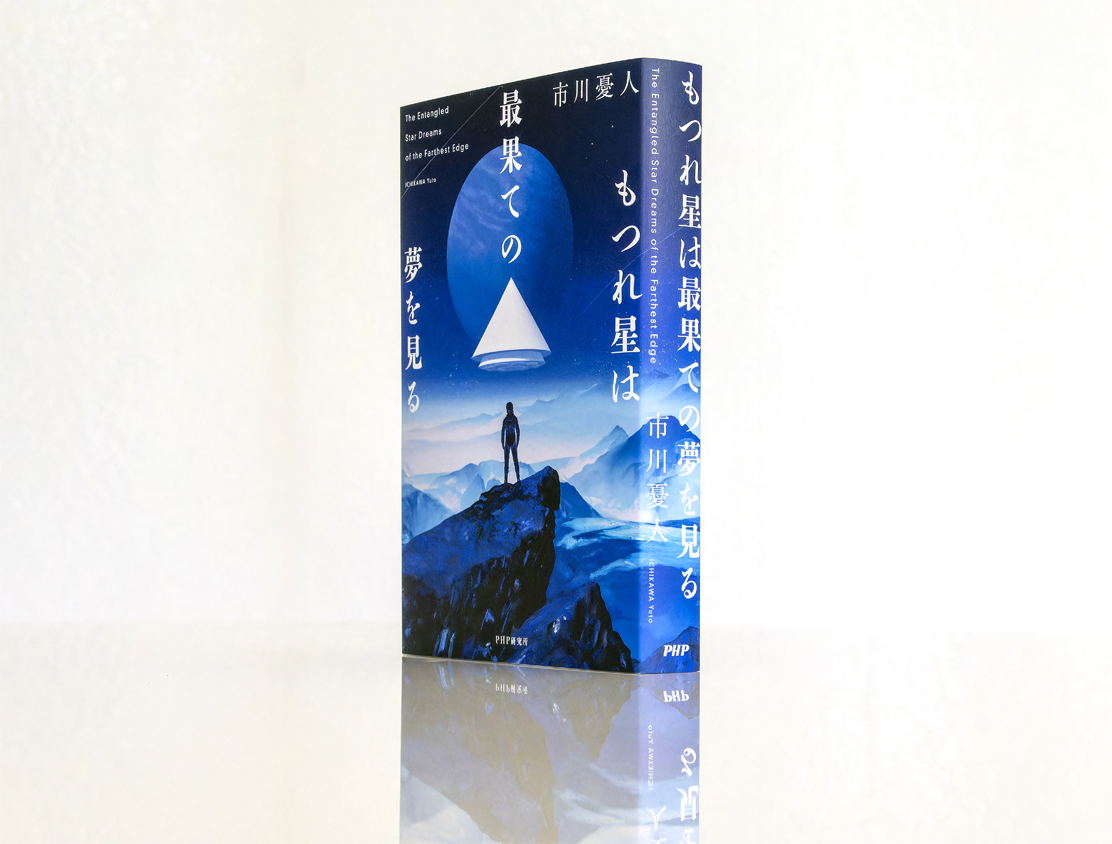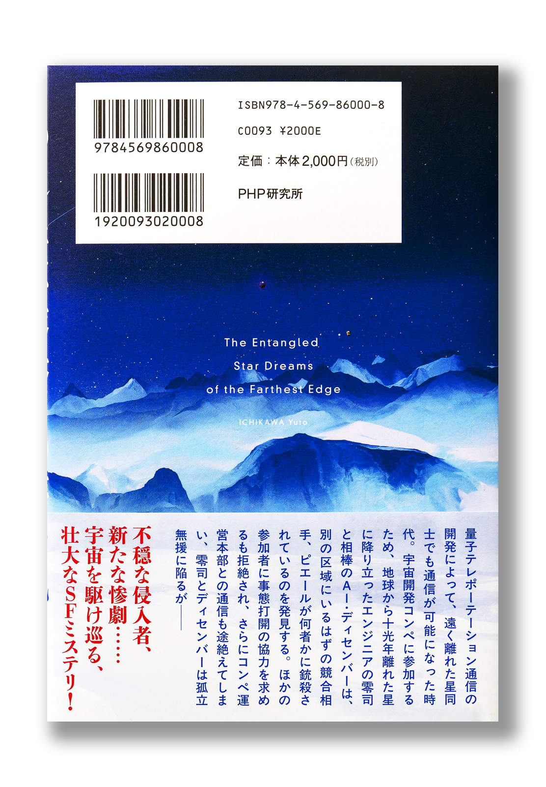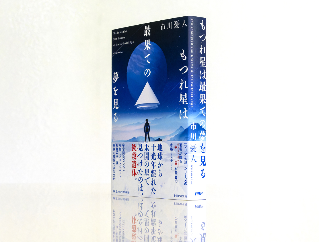 青い地表の惑星に降り立った人類が、宇宙船と惑星を見上げる、美しく壮大な印象の装画。王道のSFミステリらしい顔になることを目指し、デザインを進めました。静謐さの中に、ひとさじの不穏さが。