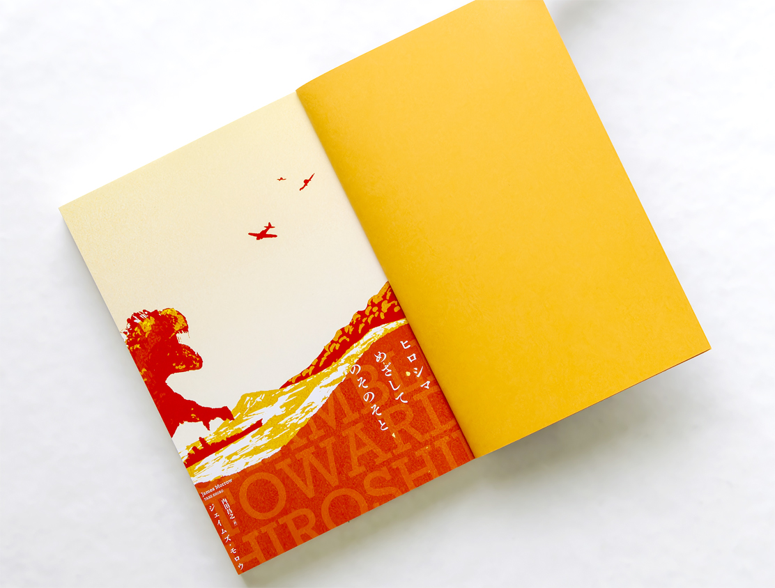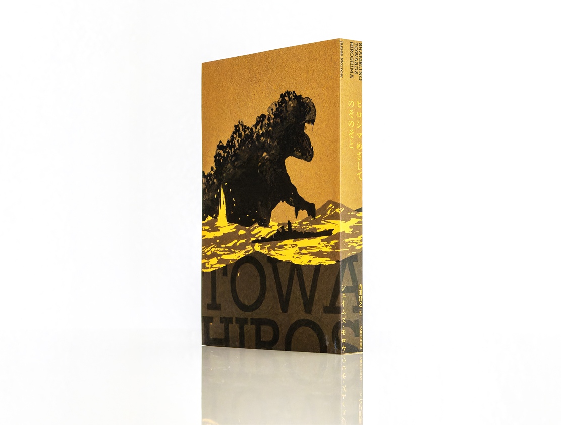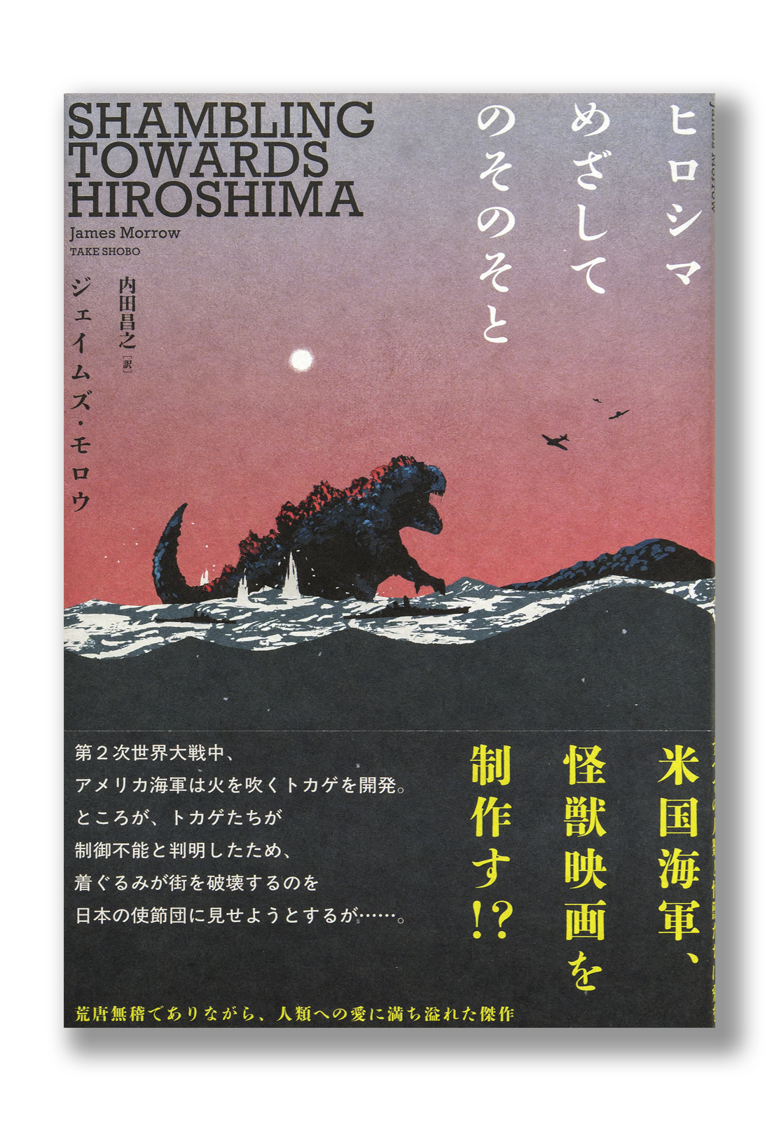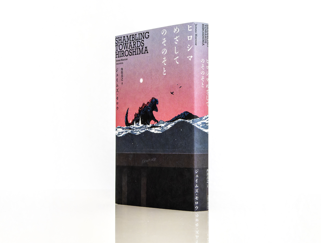 「着ぐるみの怪獣」であることを装画でどう表現すればいいか、見せ方を検討。結果、撮影中のワンシーンをセット込みで描いていただく、という案が採用に。セットの部分は帯で隠し、めくるとタネがわかる、というプランです。