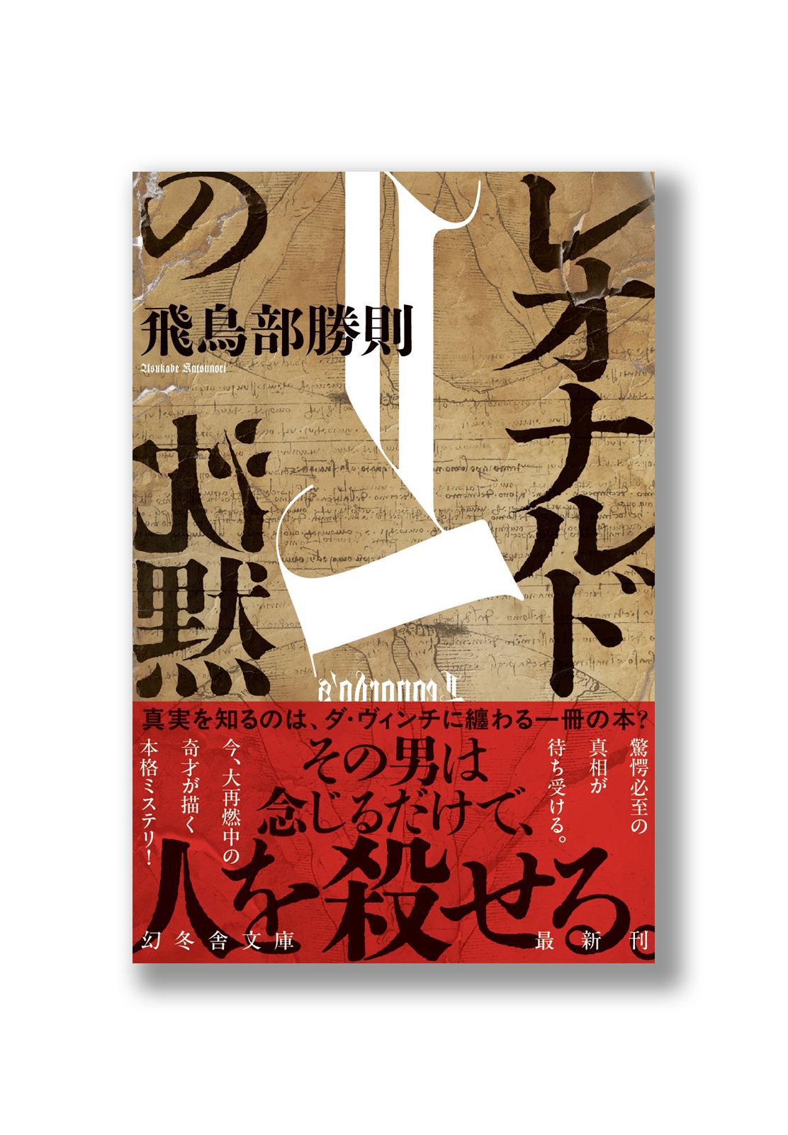 探偵が『抹殺ゴスゴッズ』にも登場する妹尾であることから、両作の装幀の雰囲気を少し寄せる方針を設定し、見せ方を検討。作中キーとなるレオナルド・ダ・ヴィンチの手稿をビジュアル要素とし、タイトルにはこれもキーワードの一つである「さかさま・あべこべ」のイメージを反映しました。
