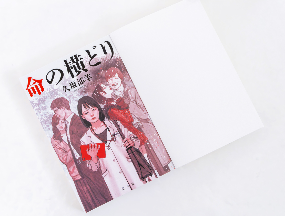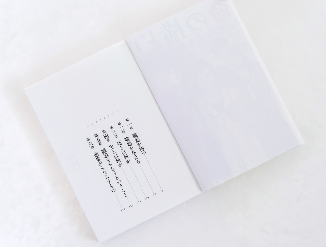 主人公を中心に、臓器を提供する側/提供される側の双方を見せられるような構図を提案。それぞれの人生が想像できる、密度の高い装画として仕上げていただきました。