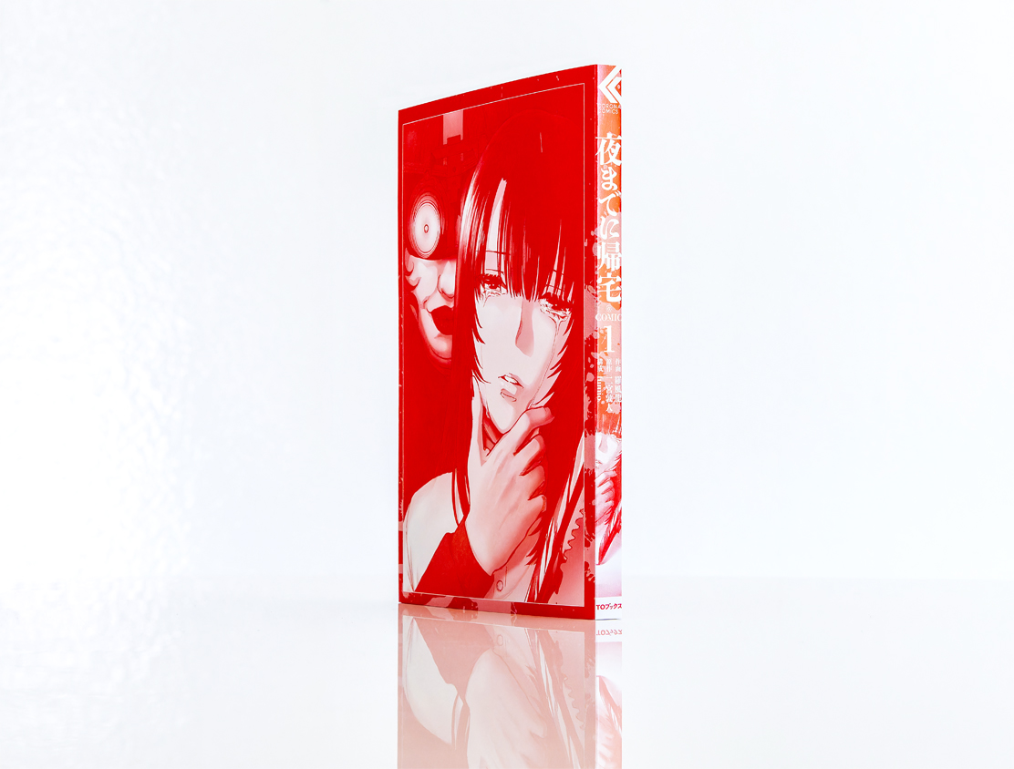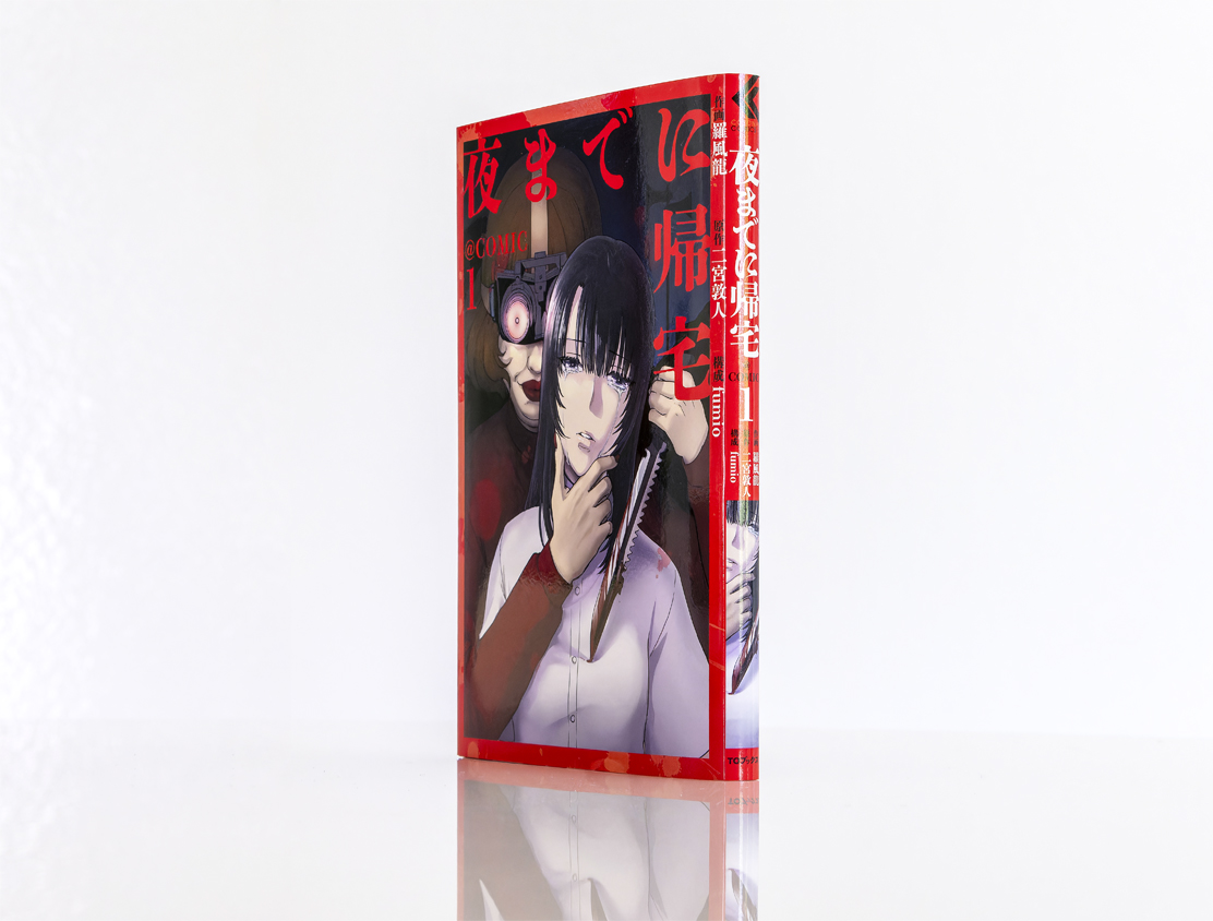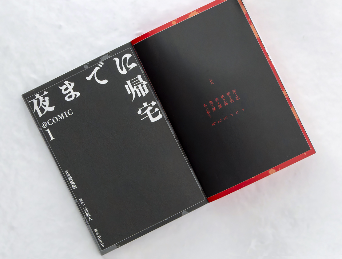 原作小説の装幀を担当したご縁で、コミカライズ連載開始時のロゴやバナーのデザインを担当。今回コミックス1巻の刊行にあたり、そのロゴを活かした装幀を、ということでご依頼をいただきました。不穏で恐ろしい装幀に負けないよう、赤を印象的に使ったデザインをご提案。