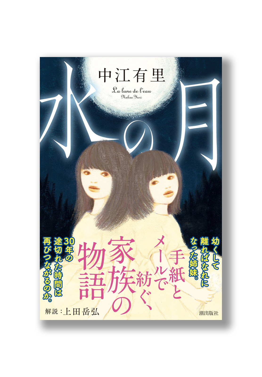 作中象徴的に登場する満月を背景に、背中合わせの幼い姉妹を描いた構図案が採用に。二人の絆が感じられる、冴え冴えとしつつも穏やかな優しさもある印象の装幀となりました。