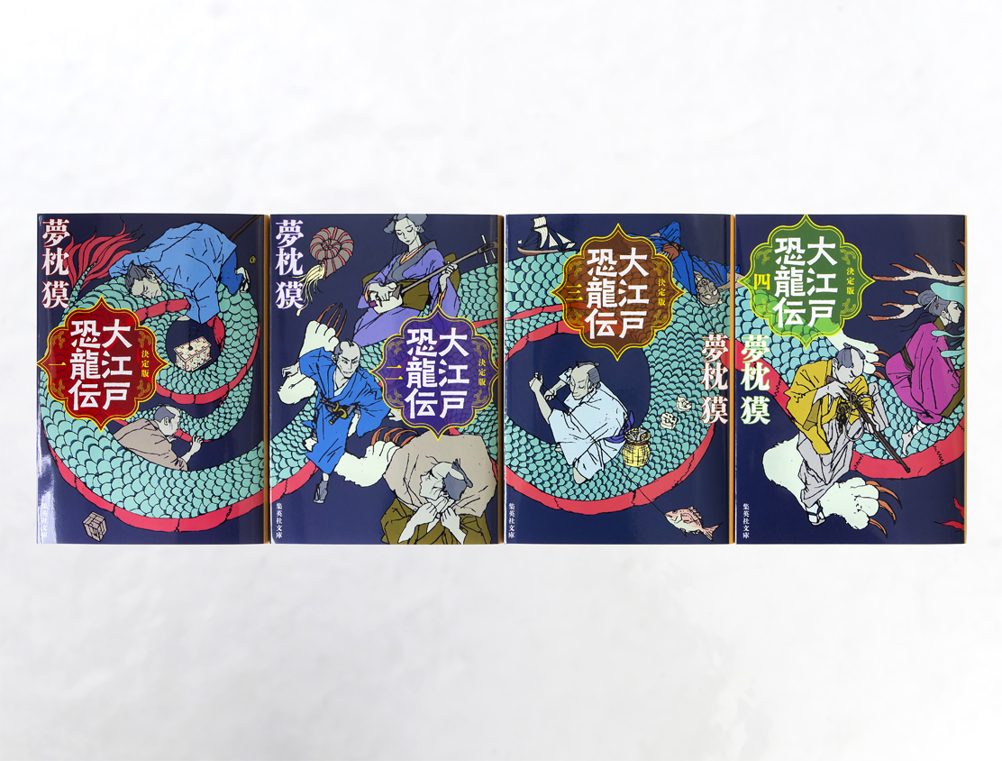 5ヶ月連続刊行予定の第4巻。5冊を並べたときに仕掛けのある本にしたい、というオーダーを受け、プランを検討。スカイエマさんに、龍が5冊を貫通し、登場人物たちがその龍に絡む絵作りをご依頼。