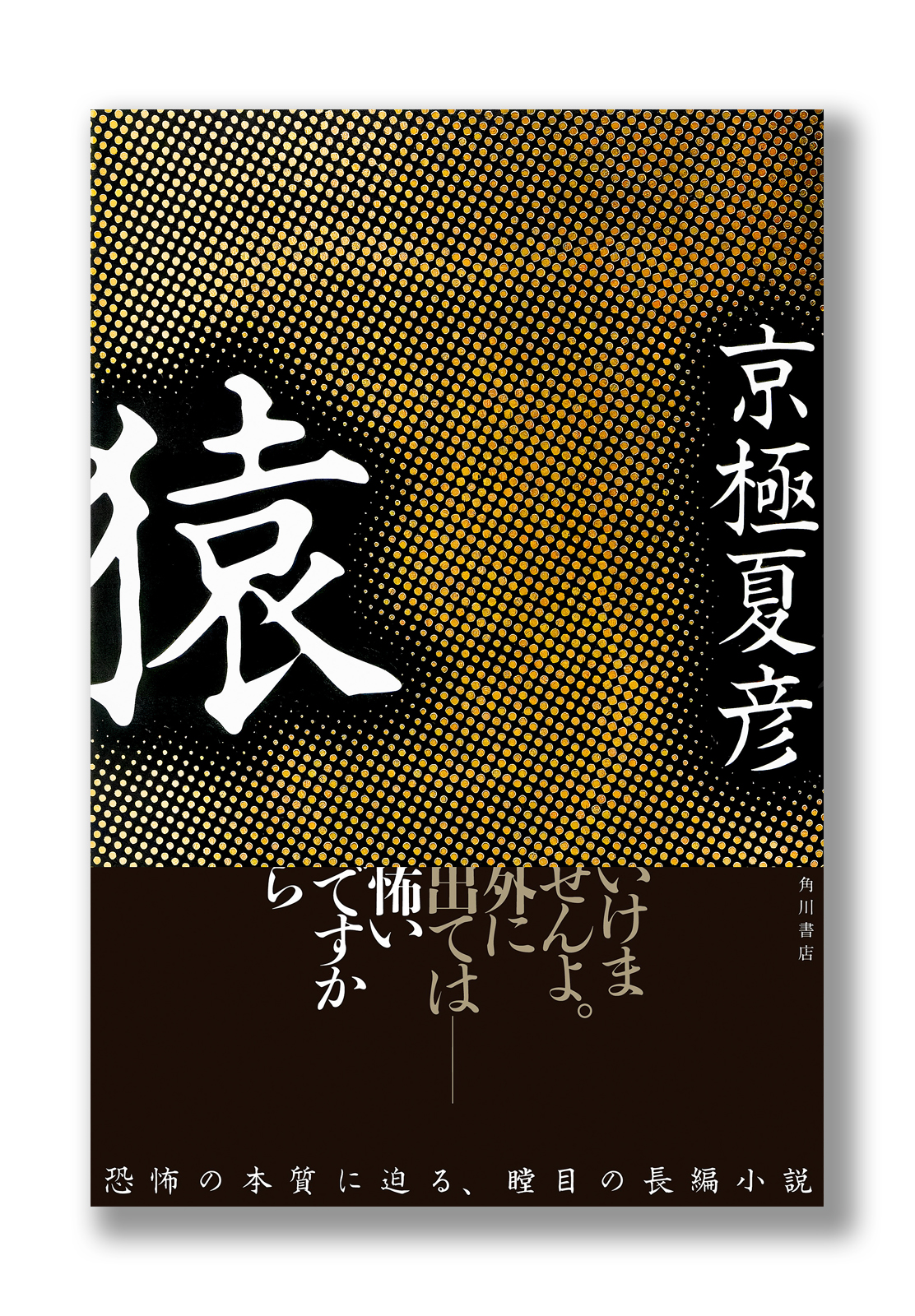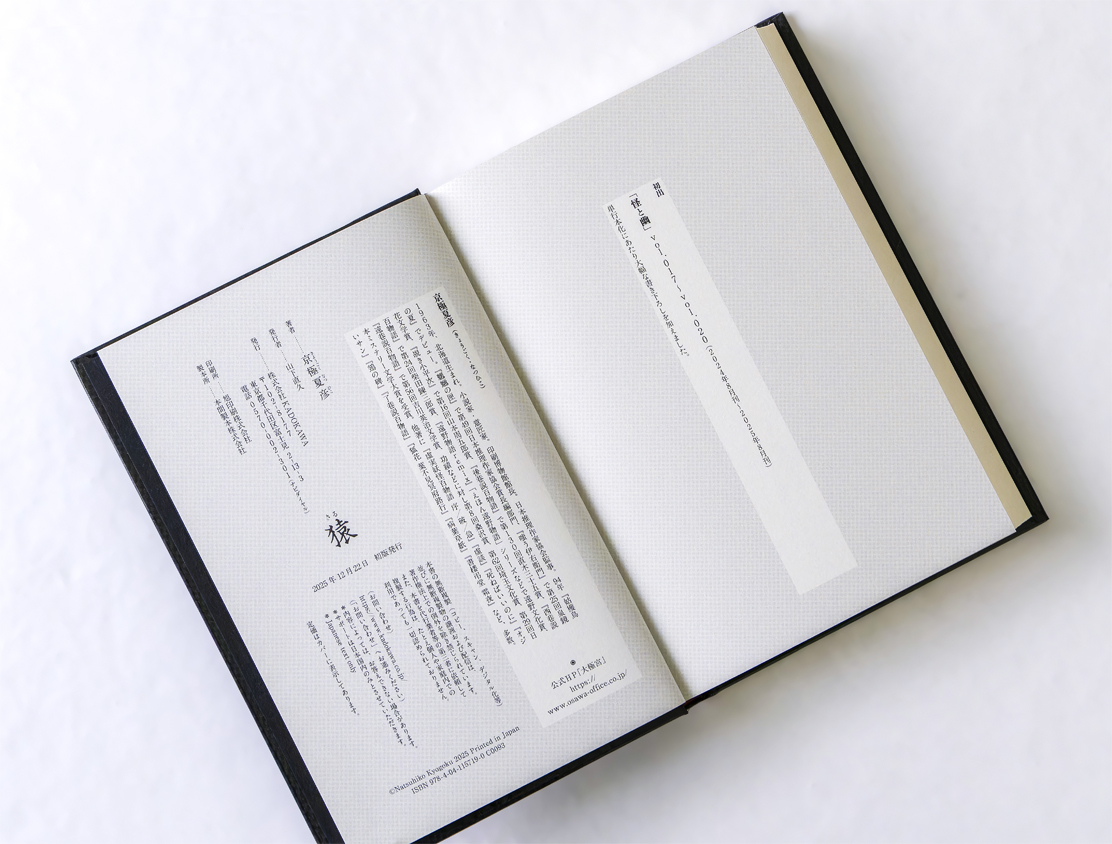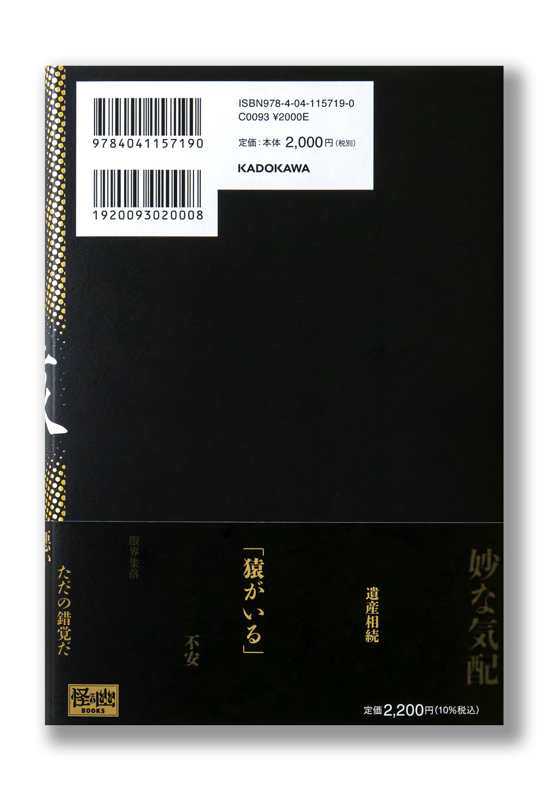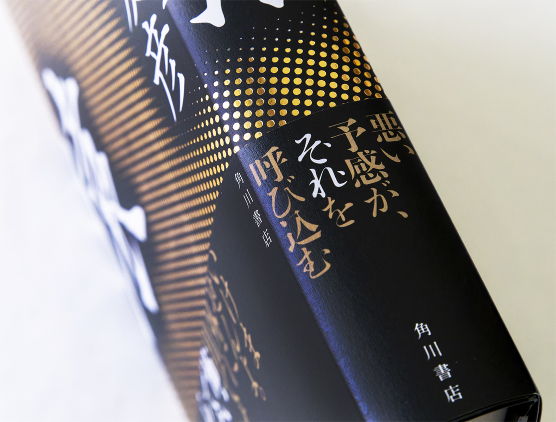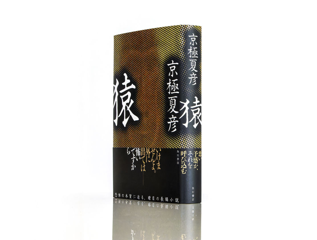 作中で言及される「怖さ」の正体のようなものを装幀でも表現できないかと試行錯誤した末、黒地に金箔のドットパターンの中に、よくよく見ると猿の顔が浮かび上がる、という案が採用に。