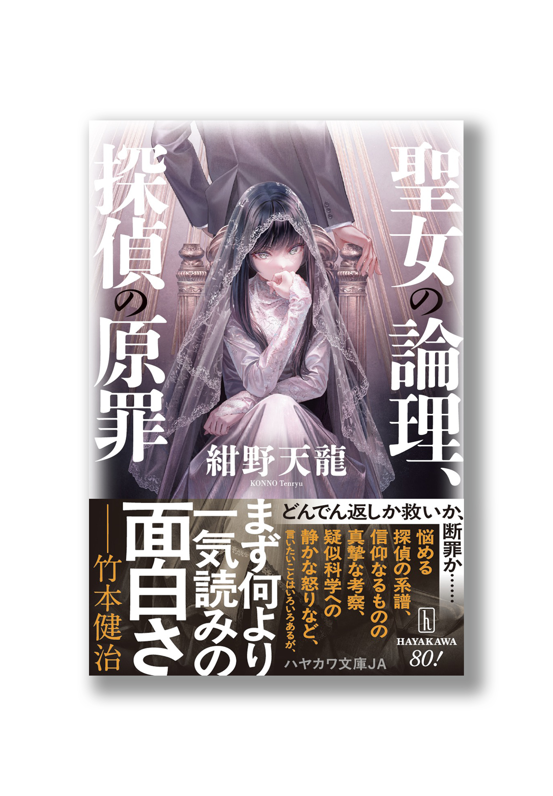 白枠をつけ、タイトルも白抜きにするなど、デザイン的にも「聖女」が探偵役であることを強く意識しました。