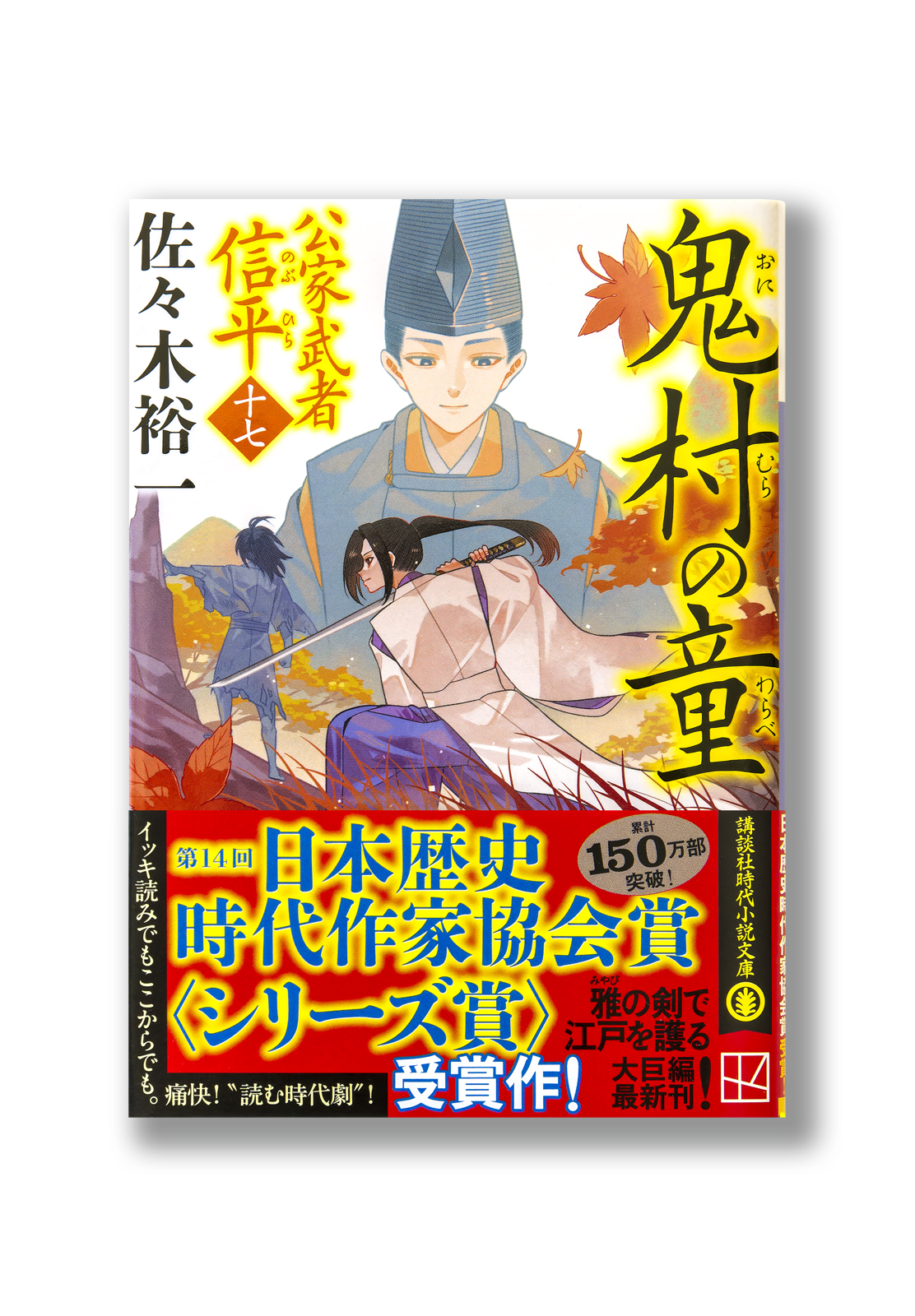 紅葉の山を背景に、信平・信政・楢太郎の姿を組み合わせて構成。信平が信政を見守る様子が伝わってくる装画です。